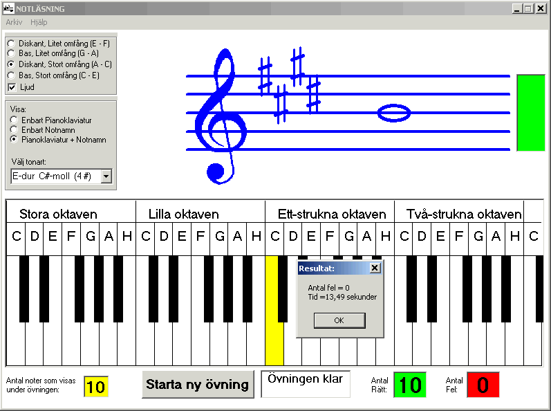 NOTLÄSNING - Windows-program för träning av NOTLÄSNINGSFÖRMÅGAN på ett roligare sätt.