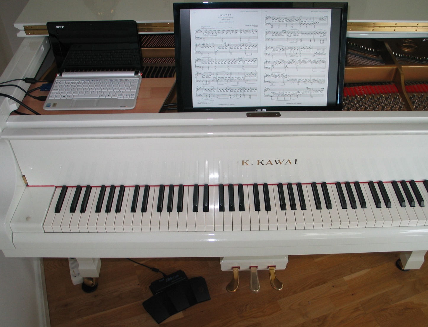 dator (t.ex. en Netbook) och en platt skärm ryms under locket på en flygel.
