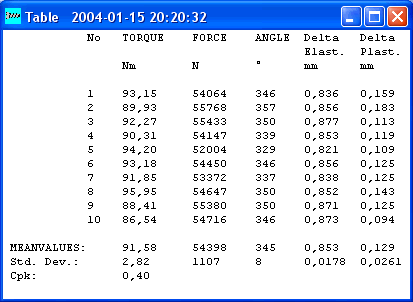 to "Yes", you will also get Meanvalues, Standard deviations and Cpk-value in the table.